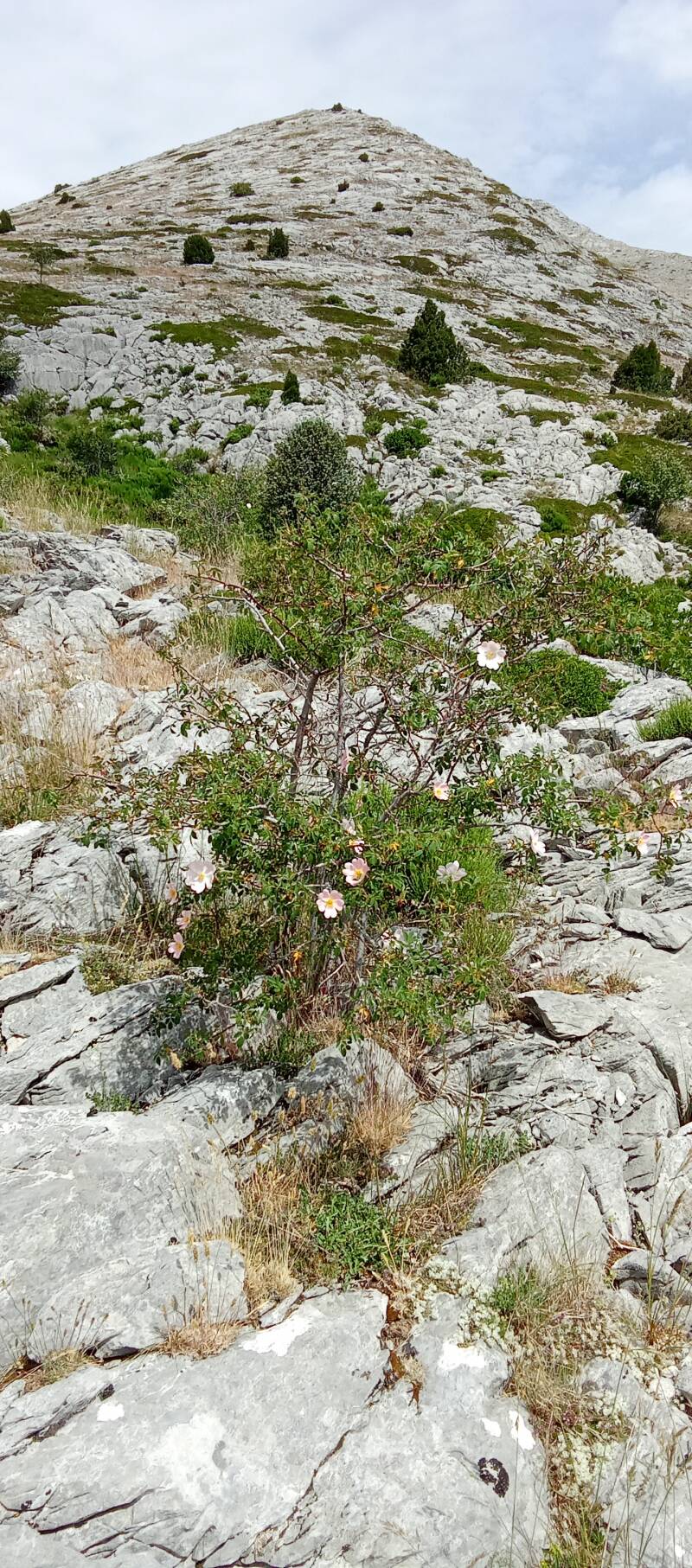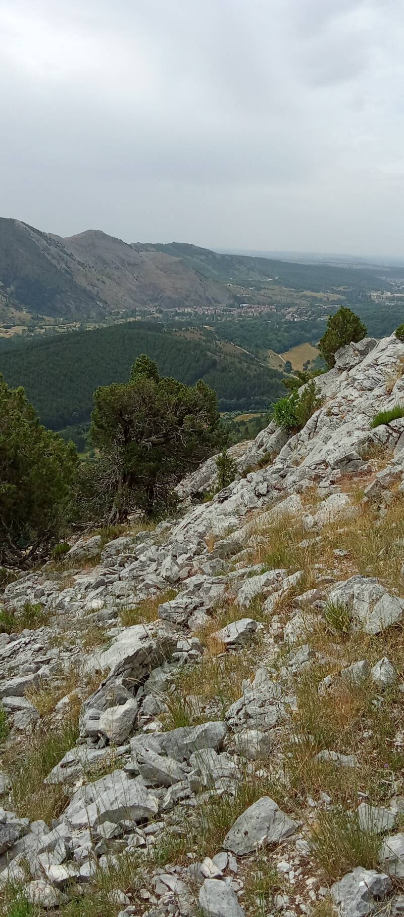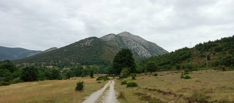 Die Tour hatte ich aus Komoot gesucht, soviel sei direkt vorneweg gesagt. Ein karger Berg welcher sich über drei Gipfel erstreckt, ist dieser Pena Lampa(1804m). Heute war ich wirklich froh über meine Garmin-Uhr mit Kartenfunktion! Es gibt hier in der Region wohl keine Farbmarkierungen oder gar Schilder in den Bergen, lediglich beim Abstieg halfen mir ein paar Steinhaufen mich einigermaßen in der vollkommen weglosen Steinwüste zu orientieren. Im Aufstieg hatte ich mich bestimmt dreimal "verstiegen" und konnte dank der Karte und dem dort vorhandenen Strich ausmachen, auf welcher Seite der Bergkannte der sichere "Weg" zu suchen ist.