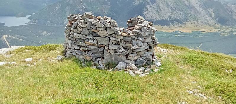 Ein Wind war das heute dort oben und wohl auch immer so, da es einen Schutzkreis aus Steinen direkt neben dem Gipfel gibt.