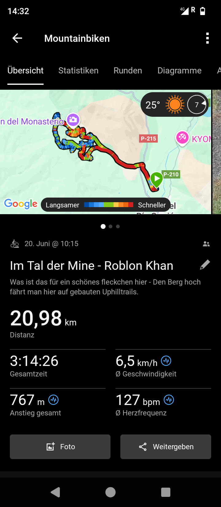 Die Trailbauer der Gegend sind sehr fleißig und mindestens genauso kreativ in ihrem Schaffen. Hinauf den Berg gibt es im Tal nur die Minenstraße, welche aber nur zur Hälfte nach oben reicht - also kurzum einen echten Uphilltrail gebaut! Respekt "Bosque Magico"! Dieser ist auch sehr gut mit Übergewicht und ohne Elektro zu bewältigen und macht zudem auch noch Spaß.