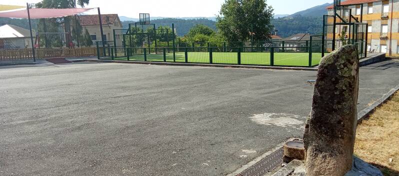 Die Suche über die Applikation "Park4Night" erbrachte dieses Mal diesen doch schon fast perfekten Platz, zwar ohne Schatten für das Gespann aber direkt daneben spenden die Bäume den so wichtigen. Ein Court und eine Frischwasserquelle! Bei Ankunft spiele ich direkt noch ne halbe Stunde(Traumquote, vorallem der Hookshot klappt prächtig heute). Das Wasser aus dem Brunnen ist zwischen lauwarm und warm :-)
