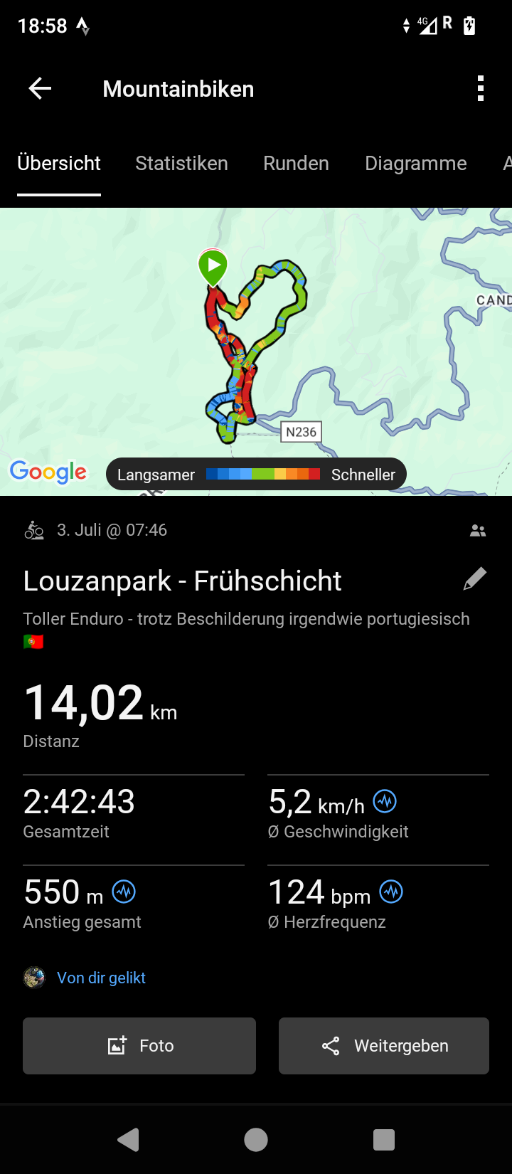 Etwas oberhalb von Coimbra gelegen sind Berge und ein durchaus touristischer Ort Names Lousa. In den Jahren 2020 und 2021 war hier im Louzanpark der UCI Downhillweltcup zu Gast. Von diesem Glamour ist leider nicht mehr viel übrig geblieben über die Jahre. Der Park ist zwar geöffnet und man könnte sich Shuttlen lassen, dafür fehlen aber unter der Woche die Mitstreiter! Lediglich ein paar Einheimische fahren Abends nach Feierabend eine Runde mit ihren E-MTB.