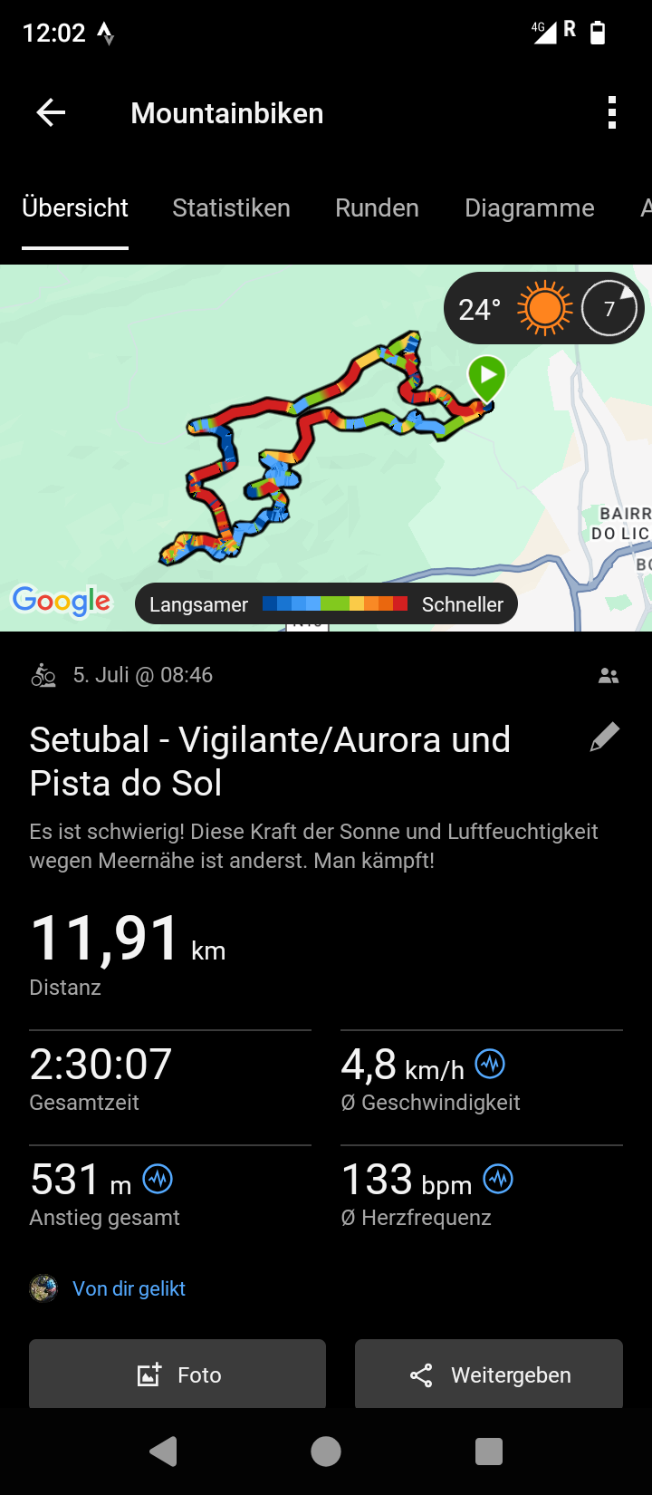 Ich behalte die Früher-Vogel-Methode bei und fahre früh los für die Runde. Es reicht heute für zwei Trails, welche beide erstaunlich gut sind. Eine Qual ist es trotzdem irgendwie da wir wieder nah des Atlantik sind und die Luftfeuchte einfach heftig reinpfeift.