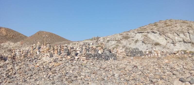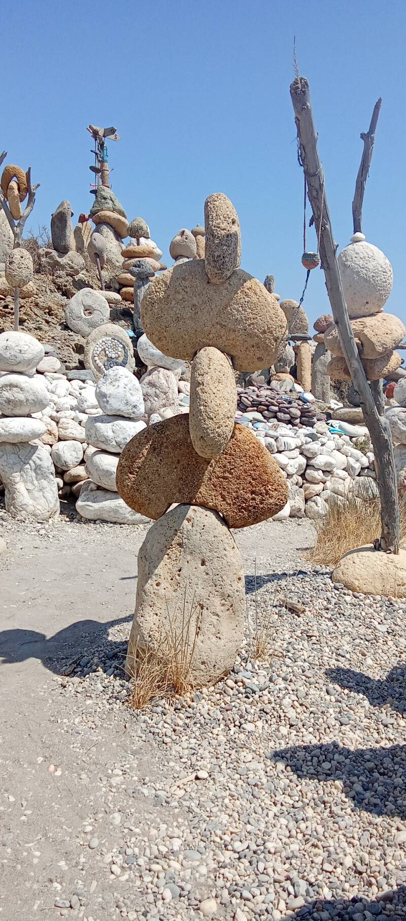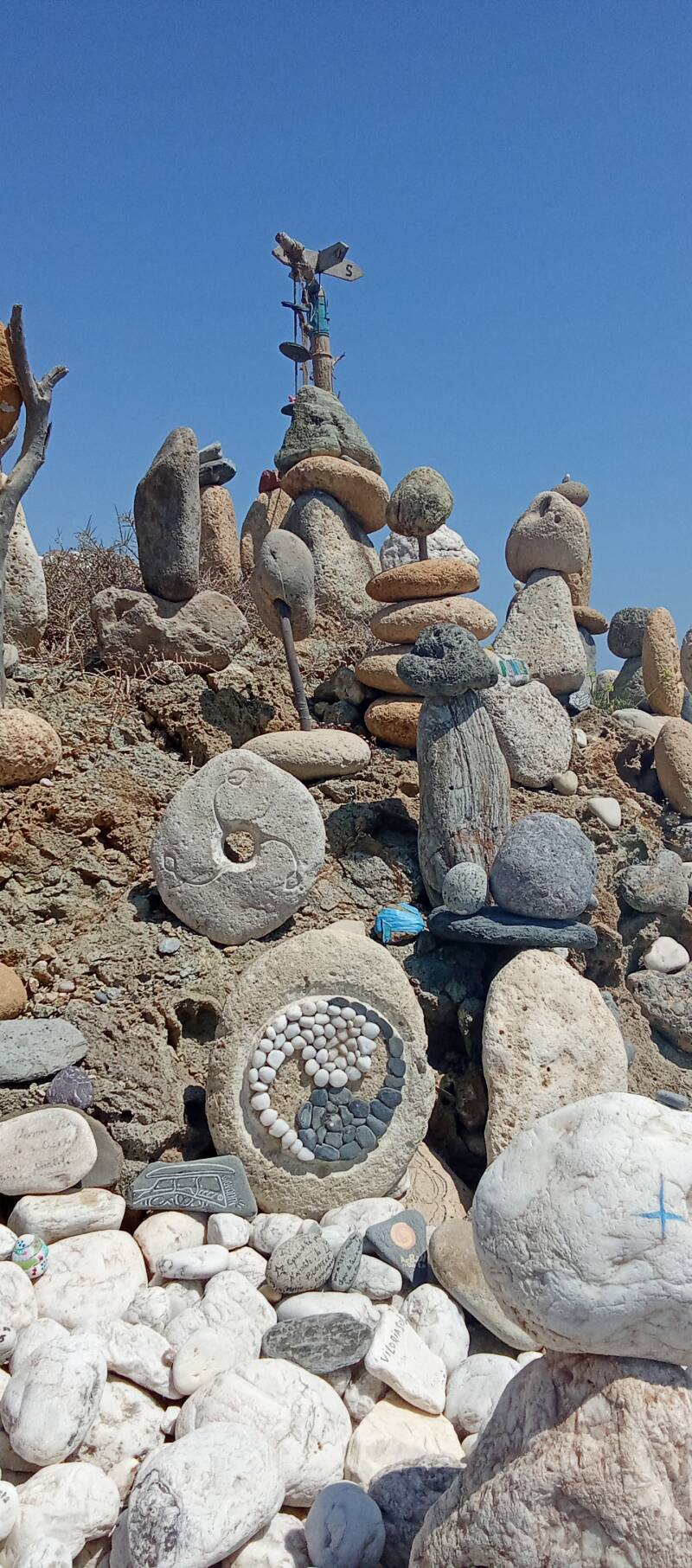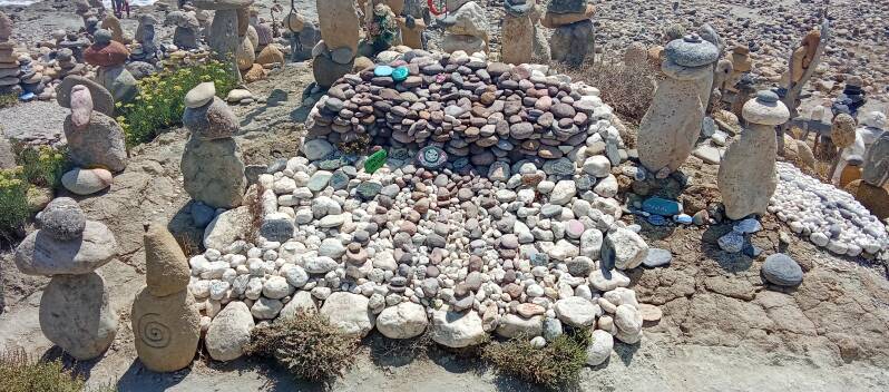 Wenn man den Strand ein Stück entlang wandert, stößt man ganz bald auf ein kleines Open-Air-Atillier. Hier wurden und werden immer noch täglich neue Kunstwerke und Erinnerungsstücke erstellt und gelegt. Ob nur ein Stein bemalt und mit Sprüchen versehen oder gleich mehr oder weniger komplexe und aufwändige Skulpturen erstellt werden. Jeder darf sich hier verewigen. So auch ich und es macht Spaß ein paar Steine zu stapeln. Sehr beruhigend und gar meditativ bei Musik oder Wellenrauschen. Super! Diese Hippies ey!